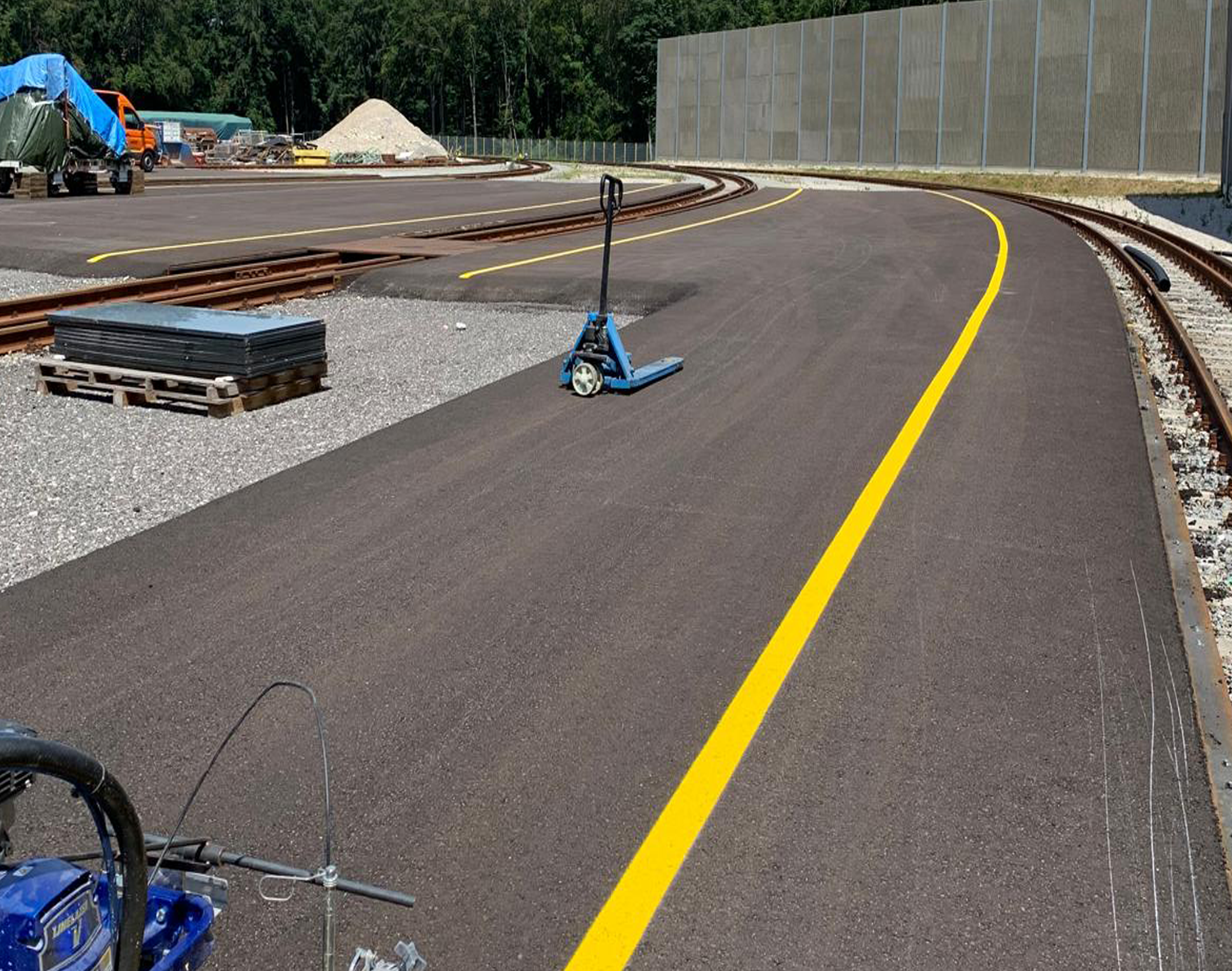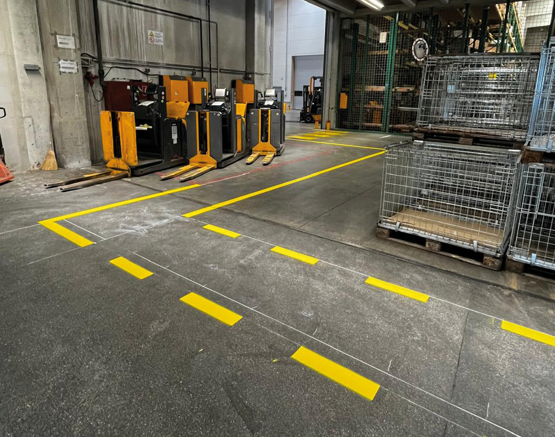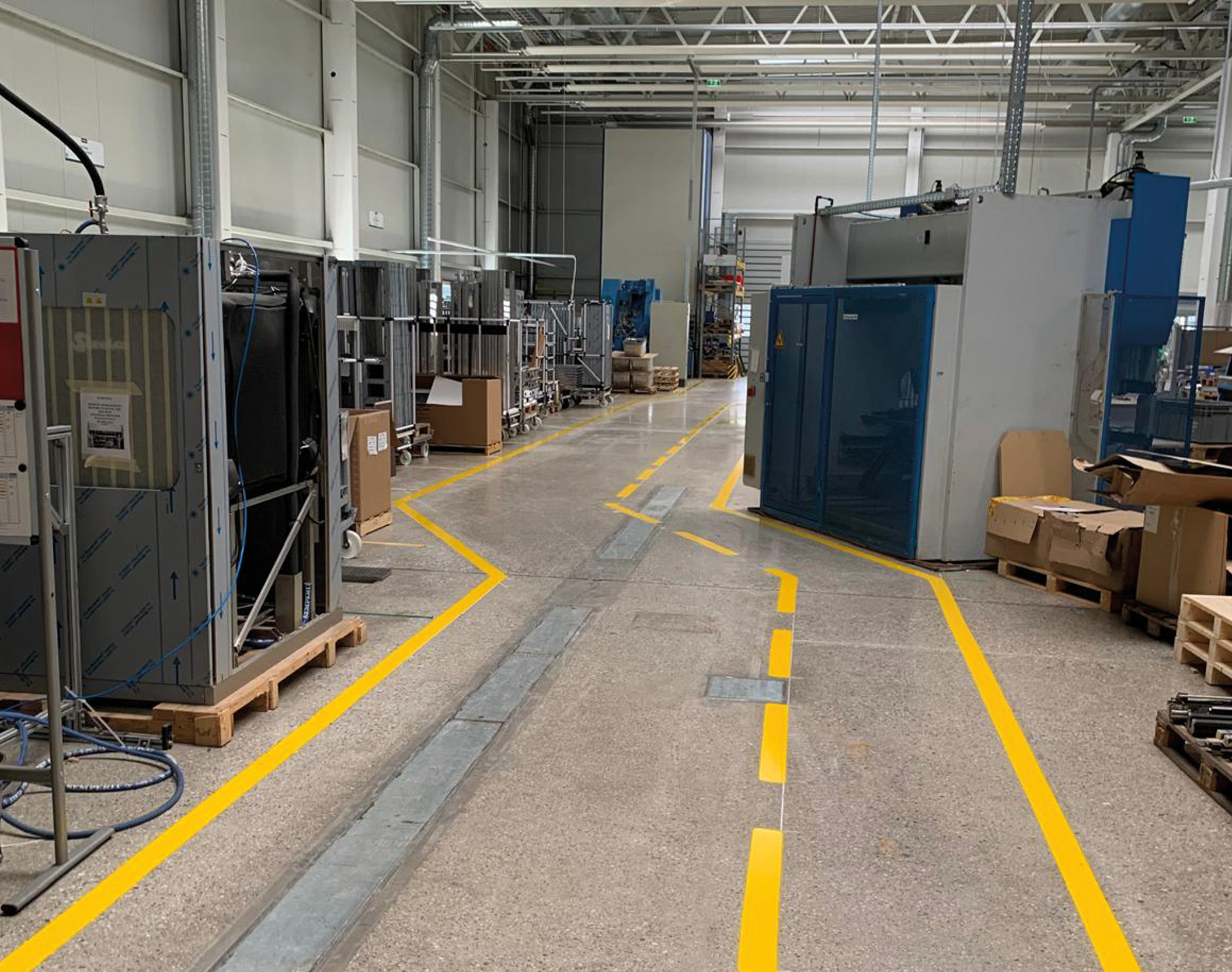 Hallenmarkierungen schaffen klare Strukturen, erhöhen die Sicherheit und optimieren Arbeitsabläufe. Fahrwege, Gehbereiche, Lagerflächen und Sicherheitszonen werden eindeutig gekennzeichnet und optimieren effiziente Prozesse.